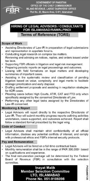 FBR Latest Jobs 2025 for Legal Advisors